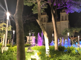 Pretty main plaza named after a former president who banished religious interference from politics.