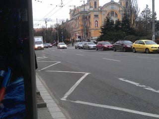High traffic station, don't cross the street here go to the pedestrian crossing!