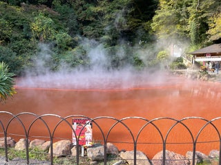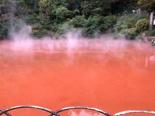 真っ赤な温泉の池です