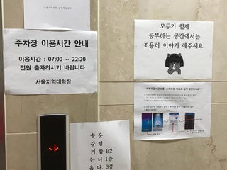 주말에 주차 공간 여유 있구요. 컴퓨터 학습실, 열람실, 강의실 모두 깨끗하고 쾌적하게 이용할 수 았습니다.(방송통신대 학생 한정)