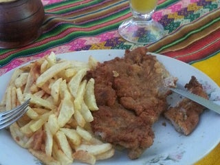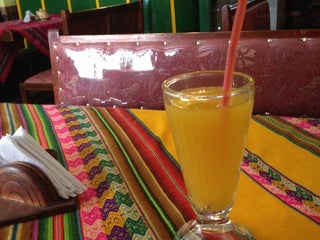 I ate the 4course meny for 40 bolivianos. Had all vegetarian options, the lentil burger was really tasty. The crepe as well. This place is really cheap!