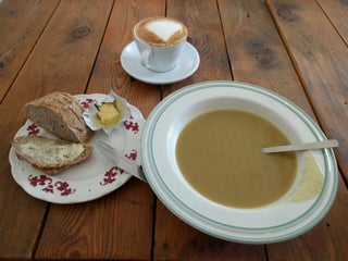 Tasty soups, waffles and cozy atmosphere.