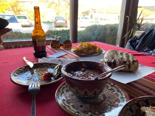 Боб чорба, пърленка, свинско бонфиле и крем карамел.