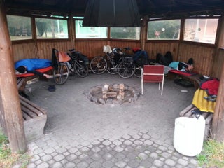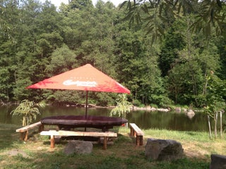 Pěkné místo, přírodní stoly s lavicemi. Stánek otevřený až od 17 hod.