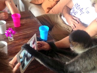 Watch out for the pet monkey Buzz - she bites!