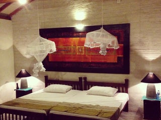 Далеко от Сигирия по труднопроходимой дороге. Туалет с душем под открытым небом. Нет ресепшна, но есть москитные сетки.