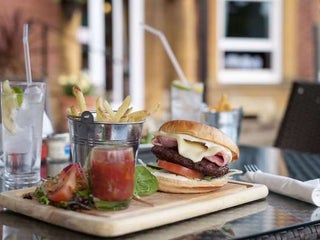 The service has been spectacular over our week here. The food is good, with plenty of variety. The free wifi is a big plus. It's so relaxing to have a nice restaurant on a patio abutting a huge lawn.