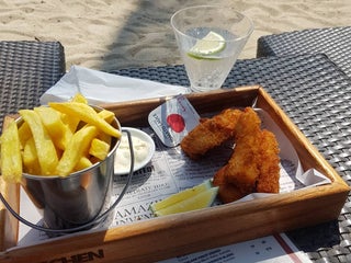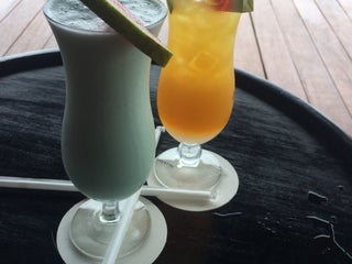Happy hour from 5-6:30 includes selected cocktails. Very nice food. But mostly I liked the ambiance as it is not noisy, looks out over the beach and is calming and relaxing.