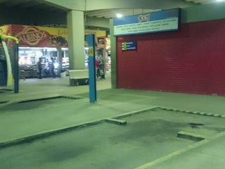Rodoviária bem ruinzinha, aberta, mto trânsito de veículos