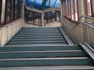 광희중학교에서 오르는 계단 옆에 개찰구까지 오르내리는 노약자를 위한 엘리베이터 탑승구가 있습니다.